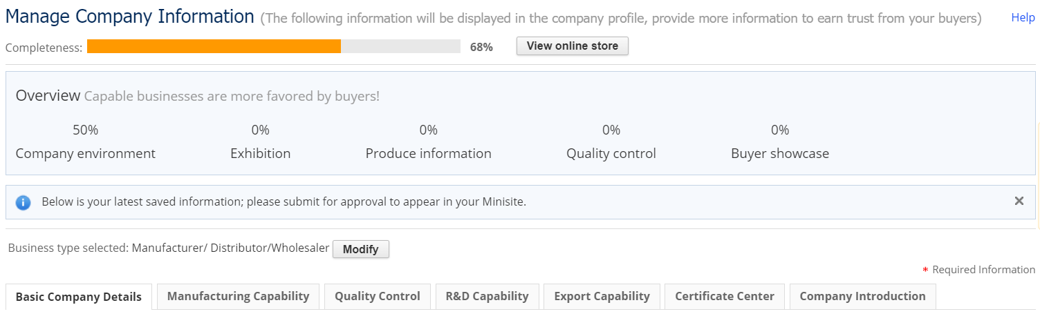 会社ページはバイヤーが貴社の情報を知るための重要なページです。貴社の魅力が伝わるように工夫をしながら、95%以上の項目を埋めるように登録しましょう。