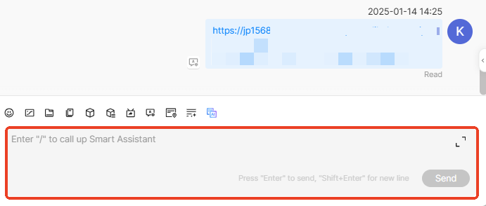 - メッセージ内容の詳細下に表示されている[Enter "/" to call up Smart Assistant]をクリックします。